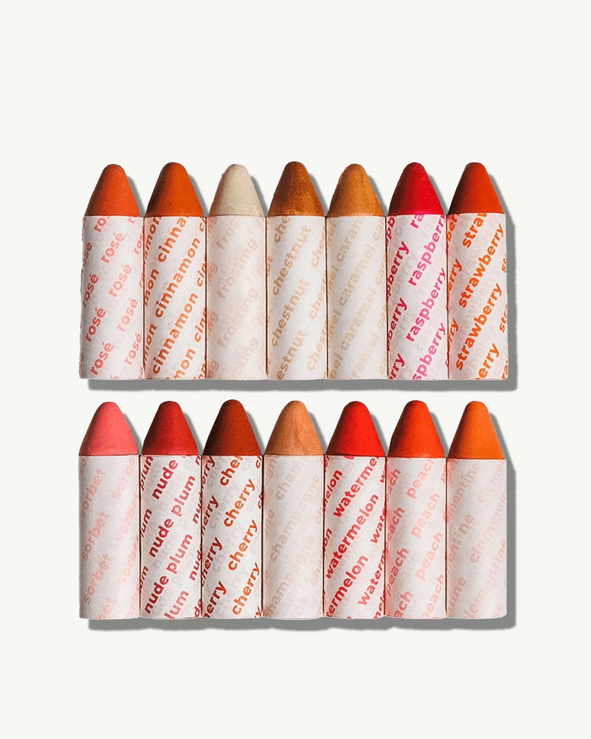 This Product Is: a full collection of 14 plastic free crayons for eyes, lips and cheeks